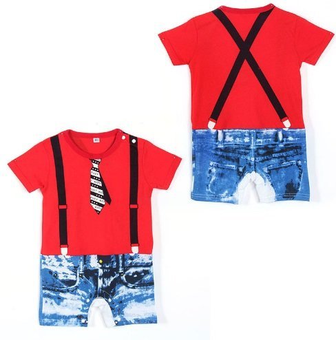 macaroni(マカロニ) ベビー 男の子 半袖 まるでセットアップ Tシャツ ロンパース (2 95cm, 2 レッド)