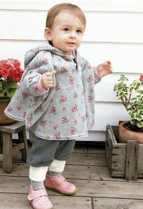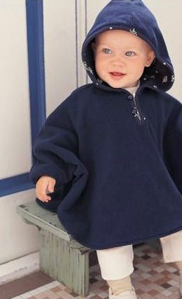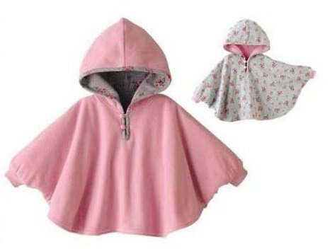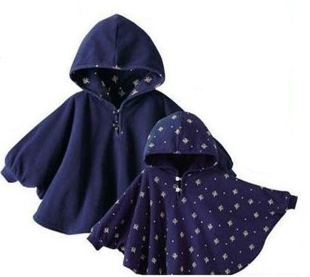 リバーシブルで使えるベビー用のフード付きポンチョです。