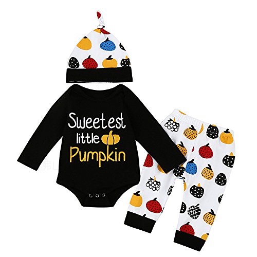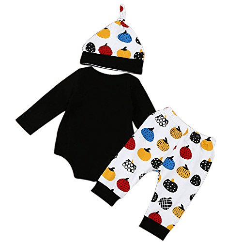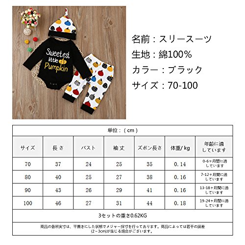 ベビー服 男の子 女の子 長袖 子供服 ハロウィン 3点セット(トップス・帽子・パンツ) 新生児 パジャマ 春秋初冬防寒着 黒 70 80 90 100 (90)