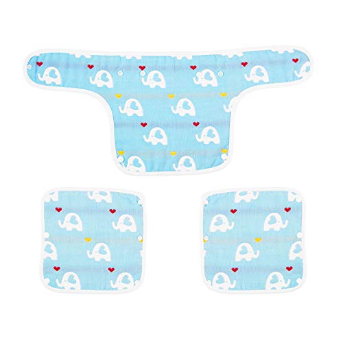 Madholly 抱っこひも 胸当てよだれカバー 3点セット 純綿100% 両面用可 スナップボタン エルゴベビー 6重ガーゼ 吸湿 速乾 ベビーギフ (ブルー)