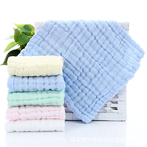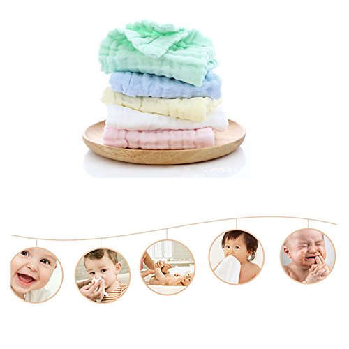 MADHOLLY【5枚セット】 赤ちゃんタオル ベビーハンカチ ガーゼタオル 6層ガーゼ 100%コットン 30 * 30cm セット内容 5色含む …