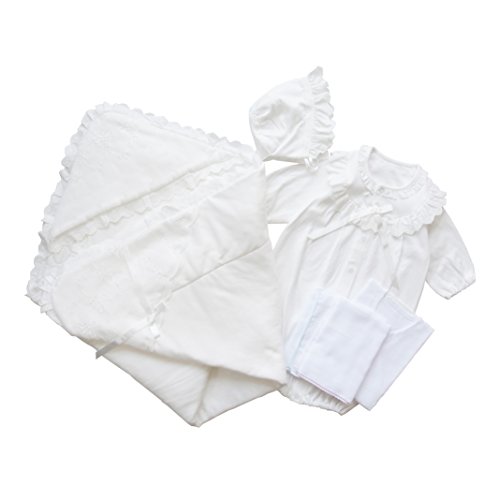 安心安全の日本製 新生児赤ちゃんの退院時やお宮参りにおすすめのベビードレス お帽子とドレス アフガンとガーゼハンカチとガーゼ短肌着が付いた5点セット 春秋におすすめの素材スムース♪