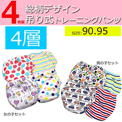 4枚組 4層 吊り式 総柄デザイン トレーニングパンツ セット ベビー キッズ 子供 おねしょ トイトレ トレパン 90 男の子4枚セット