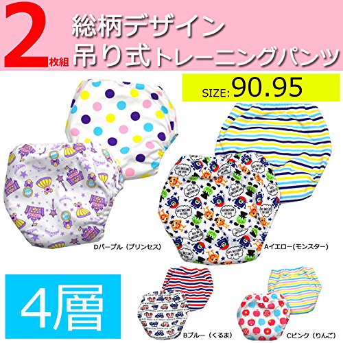 2枚組 4層 吊り式 総柄デザイン トレーニングパンツベビー キッズ 子供 おねしょ トイトレ トレパン 【ゆうパケ】 90 Aイエロー(モンスター)