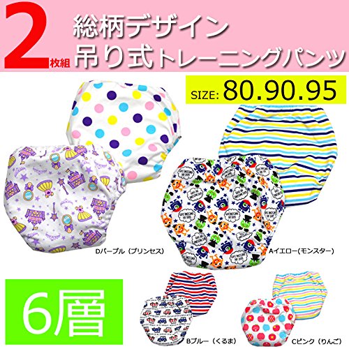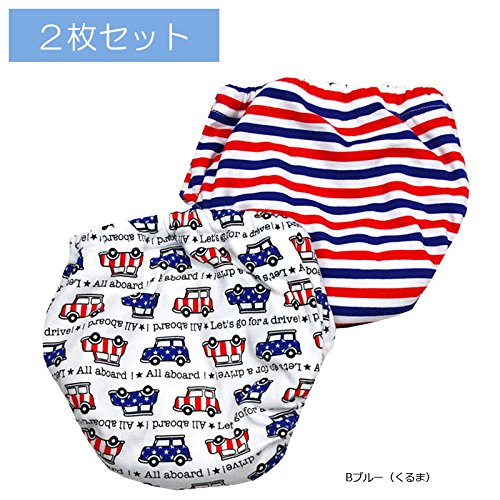 2枚組 6層 吊り式 総柄デザイン トレーニングパンツ ベビー キッズ 子供 おねしょ トイトレ トレパン 【ゆうパケ】 90 Bブルー(くるま)