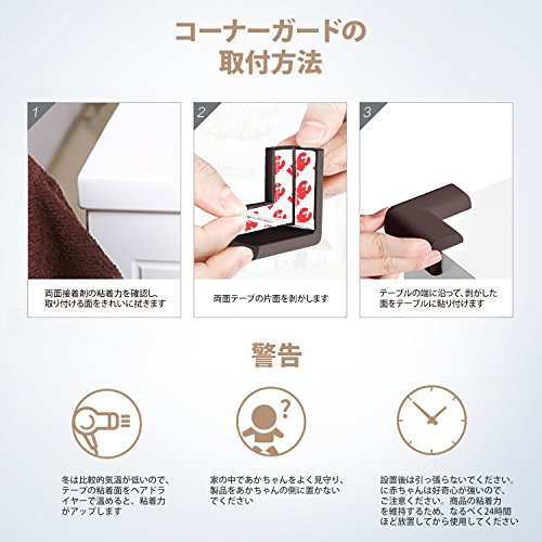 子ども年配者を安全に保護,子供用コーナーガード(12個入り),厚みのある,両面テープが予め貼ってあります (ブラウン, 12個)