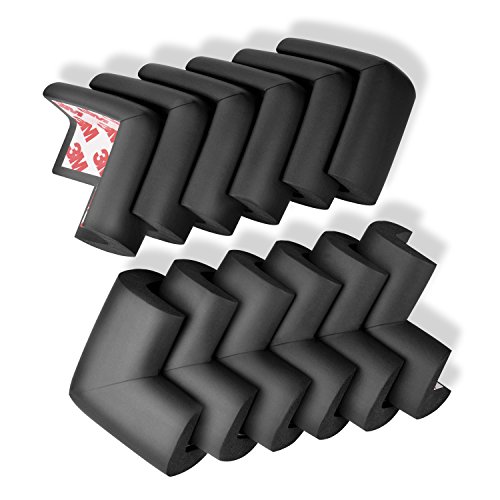 子ども年配者を安全に保護,子供用コーナーガード(12個入り),厚みのある,両面テープが予め貼ってあります (ブラック, 12個)
