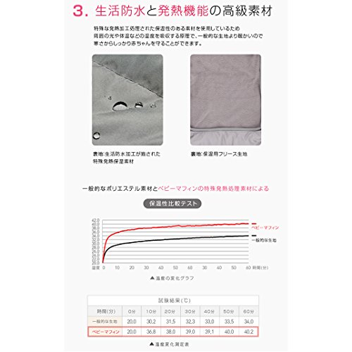 - 生活防水と発熱機能の高級素材を使用。寒さからしっかり赤ちゃんを守ります。