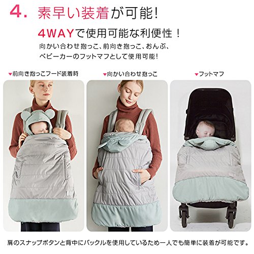 Baby Muffin 防寒ベビーケープ 抱っこ紐 ベビーカー対応 4WAY (ピンクグレー) manito21-pinkgray