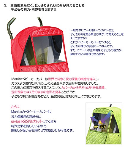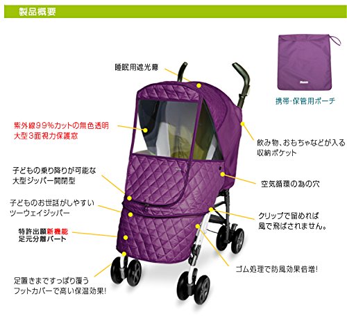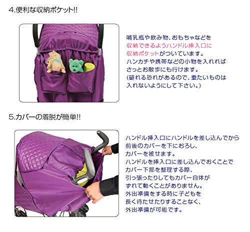 フットマフなどベビーカーの防寒グッズはたくさんありますが、顔や頭は出てしまい、冷たい風や空気にさらされていませんか?このマニトキャッスルアルファベビーカーカバーは雨だけじゃない、寒さや冷たい風、PM2.5や花粉などからも子供を守れる便利アイテムなんです。裏地に最高級ベロア生地を使用し、表地との間に綿を詰めた三重構造だから保温効果はバッチリ!雪が降るような日でも、また寒冷地にお住まいでもお出かけの間中、ポカポカに保ってくれます。さらに視力保護窓を搭載し、カバーをしていてもカバーをしていないのと同じクリアな視界を実現♪カバーを外さなくても乗り降りできたり、お世話ができる大型開閉扉もあります。またベビーカーによってはカバーを外さずにベビーカーが畳める優れもの!ベビーカーによってはカバーを外さないと畳めませんのでご了承ください。サイズは2種類。ベビーカーによてサイズが異なりますので、サイズ表をご確認の上、ご注文ください。※また長時間雨に濡れる場合はジッパー部分から雨が染み込む可能性がございますので、事前に防水スプレーをされることをおすすめします。