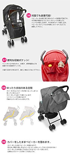 フットマフなどベビーカーの防寒グッズはたくさんありますが、顔や頭は出てしまい、冷たい風や空気にさらされていませんか?このマニトエレガンスプラスベビーカーカバーは雨だけじゃない、寒さや冷たい風、PM2.5や花粉などの有害物質からも子供を守れる便利アイテムなんです。さらに視力保護窓を搭載し、カバーをしていてもカバーをしていないのと同じクリアな視界を実現♪カバーを外さなくても乗り降りできたり、お世話ができる大型開閉扉もあります。またベビーカーによってはカバーを外さずにベビーカーが畳める優れもの!(※ベビーカーによってはカバーを外さないと畳めませんのでご了承ください。)サイズはワンサイズ。一般的なA、B型ベビーカーに装着可能。コンパクトタイプのベビーカーですと多少のゆとりができますのでご了承ください。※また長時間雨に濡れる場合はジッパー部分から雨が染み込む可能性がございますので、事前に防水スプレーをされることをおすすめします。