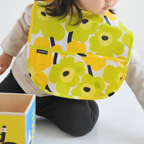 - マリメッコを代表するキュートなお花柄のウニッコが、かわいいスタイ(よだれかけ)になりました。お食事タイムのたびに写真を撮りたくなる可愛らしさ♪