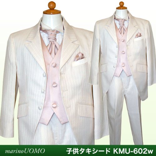 子供タキシード用メンズタキシードで人気のロングタキシードカラー: ホワイトベスト&タイ:ライトピンクサイズ:95・105・115・125・135・145 素材 : 表裏ポリエステル100% 含まれるもの:タキシード上下、べスト、ネクタイ、ドレスシャツ、ポケットチーフ今人気のロングタキシードです。メンズタキシードMU-602wと同生地、同色です。新郎とおそろいでパーティを楽しめます。タキシードは、細身から標準体型に仕上ています。ぽっちゃり体型の方はおさけ下さい。