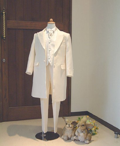 カラー: オフホワイト素材 : 表裏ポリエステル100%タイプ:フロックコート 含まれるもの: タキシード上下、シャツ、べスト、ネクタイタキシードは、細身から標準体型に仕上ています。