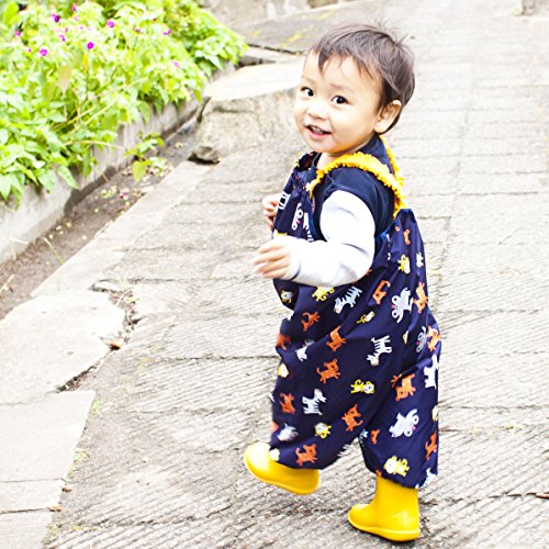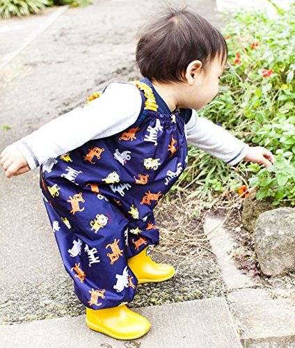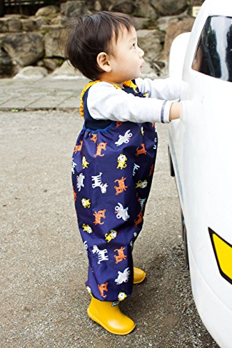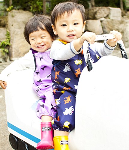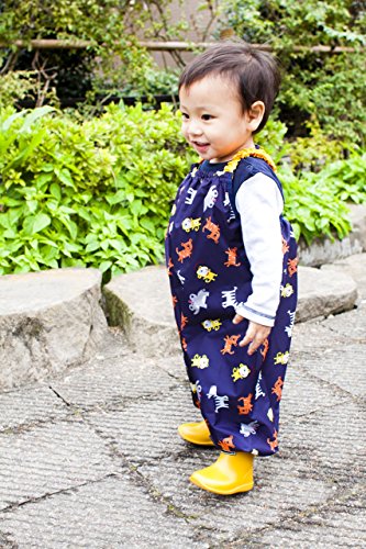 お出かけ先でさっと着てお気に入りのお洋服を汚さずに遊べます。 お揃いの収納袋付き。 肩紐のゴムの色がアクセントに♪ とてもおしゃれなプレイウェアができました。 レインポンチョとお揃いの柄で合わせれば、雨の日のお出かけもバッチリです。