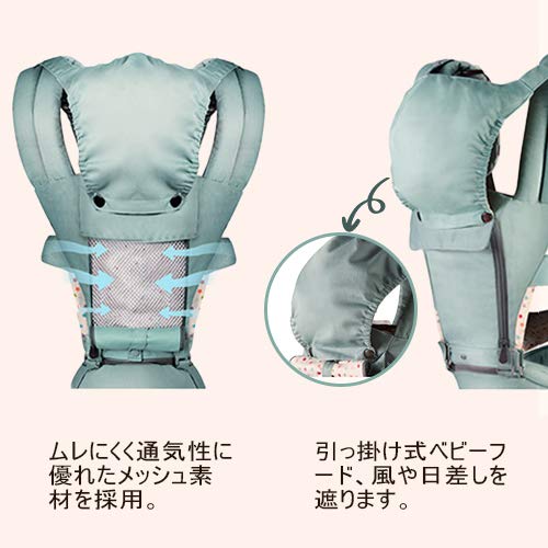 腰痛・肩こりがひどい方に特におすすめ。メッシュ地で通気性が良いので1年中快適に使えます。対面・おんぶはもちろん前向き抱っこも可能で使い方は12通り以上です。