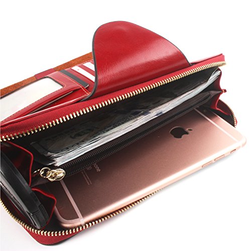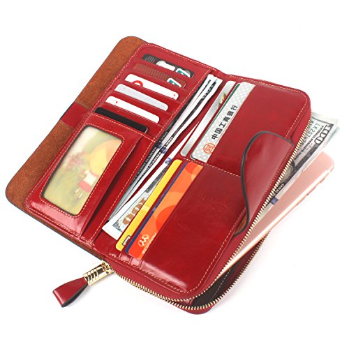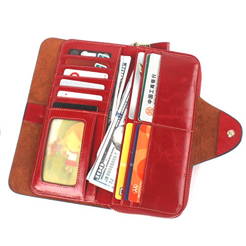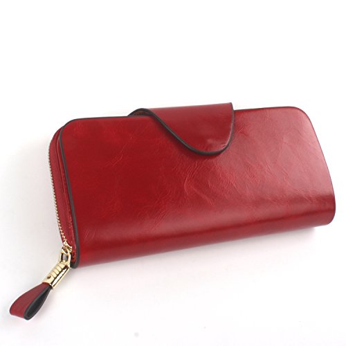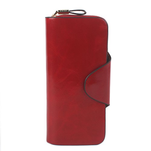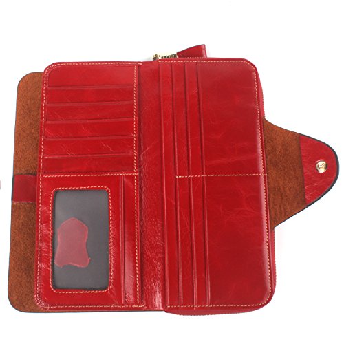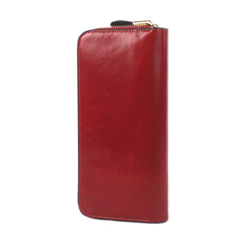 財布 レディース 本革 長財布 多機能 大容量 カード入れ付き手帳型オイル仕上げ (レッド)