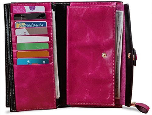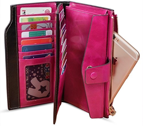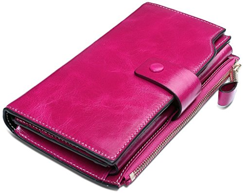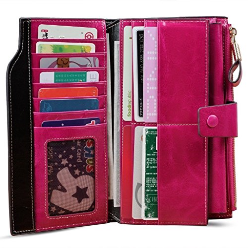 財布 レディース 本革 長財布 多機能 大容量 カード入れ付き手帳型オイル仕上げ (バラ)