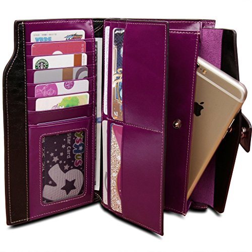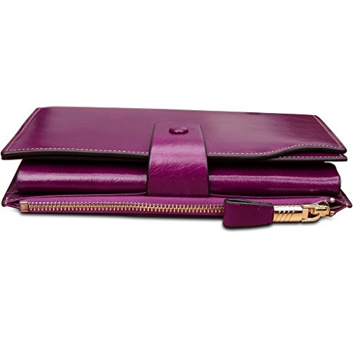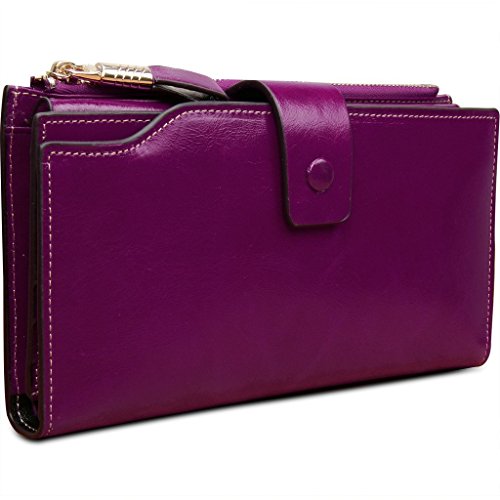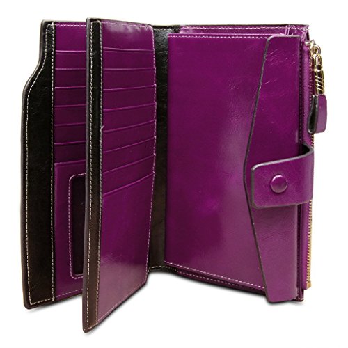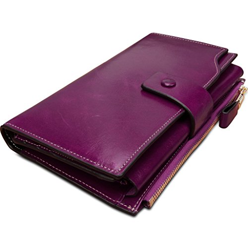 財布 レディース 本革 長財布 多機能 大容量 カード入れ付き手帳型オイル仕上げ (パープル)