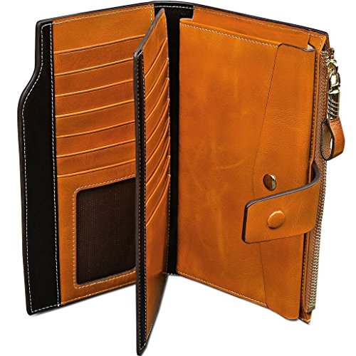 財布 レディース 本革 長財布 多機能 大容量 カード入れ付き手帳型オイル仕上げ (ブラウン)