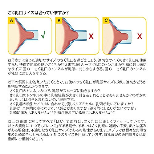 - 搾乳に際しては、お母様の乳房、乳首の大きさに合わせて、正しい搾乳口をお選びください。