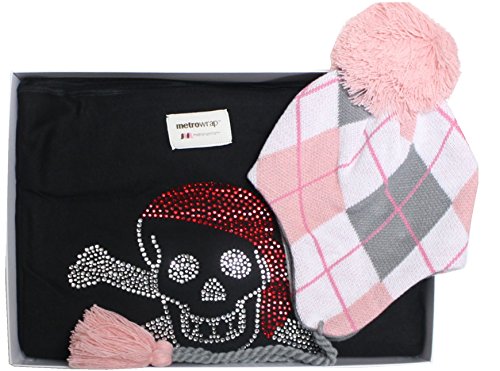 metromamma a179プレミアムコットンのメトロママスリングスカルブラックとラヴィNYニット帽子ピンクアーガイルのセレブリティギフト