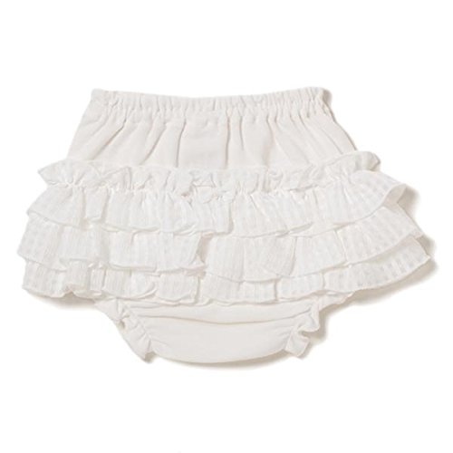■ギンガムチェックのフリルをたっぷりとあしらったボリューミーなシルエットが目を引くカバーパンツです。ちょこんと飾ったリボンがガーリー気分を盛り上げるポイント。お揃いのスタイも展開しているので、合わせてプレゼントにするのもおすすめです。