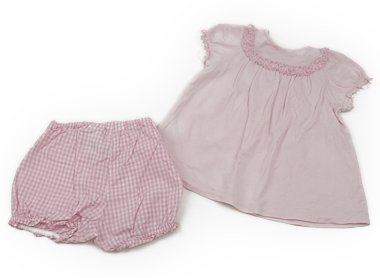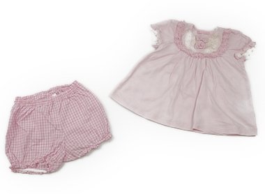 カットソーのトップスとコットンブロードのボトム。トップスのお腹のあたりにかすったような汚れがあります。毛羽立ちもありますが、女の子らしさ満載のデザインがmezzo pianoらしくまだまだ活躍してくれそうです。ボトムは目立った汚れのない良品です。