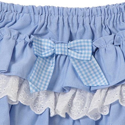 ■フリルでふわふわと飾った、スウィートムードあふれるカバーパンツです。ティアードデザインのバックへギンガムチェック柄のリボンをあしらい、女の子らしさ満点の後ろ姿に。 コットンレースをミックスして、表情豊かに仕上げたアイテムです。