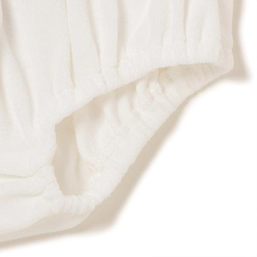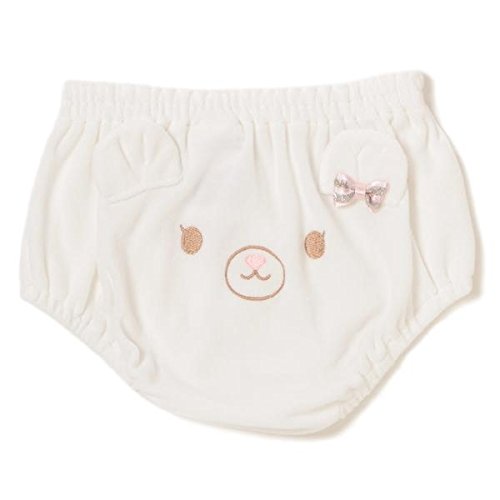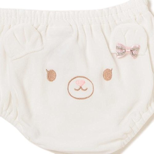 ■コーデのポイントとして活躍する、クマモチーフのカバーパンツです。愛らしい丸いお耳へミニリボンをあしらい、ガーリーな雰囲気に仕上げたアイテム。 配色の糸で刺しゅうしたお鼻もチャーミング。フロントのロゴパッチがさりげないアクセントに。