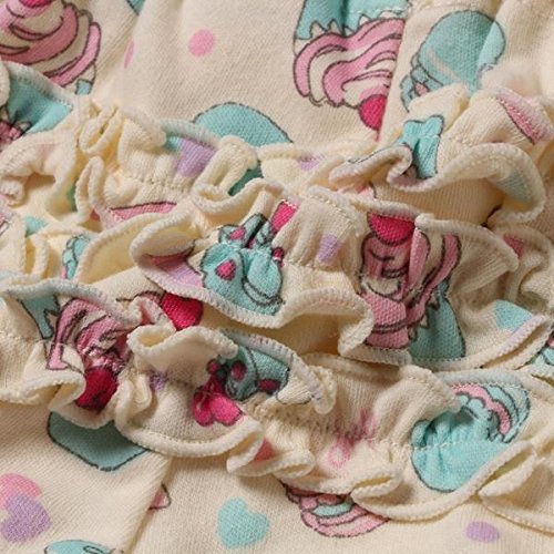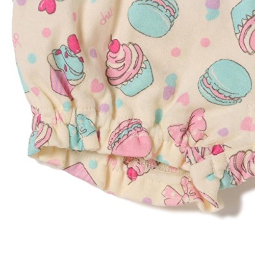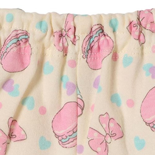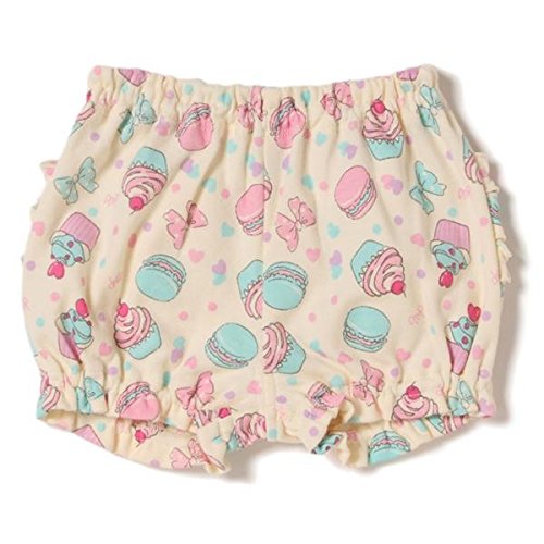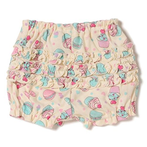 ■マカロンにカップケーキ、リボンにハートと、さまざまなモチーフをポップに描いたスイーツ柄カバーパンツです。パッと目を引く愛らしさで、コーデのポイントになるアイテム。 細かいフリルを3段に配した、キュートなバックスタイルも見逃せません。