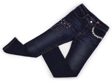 ポケット口のレースやリボンのすとーんがお洒落なジーンズです。白っぽいスレ感がありますが、まだまだ活躍してくれそうです。
