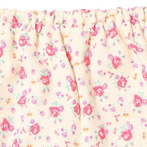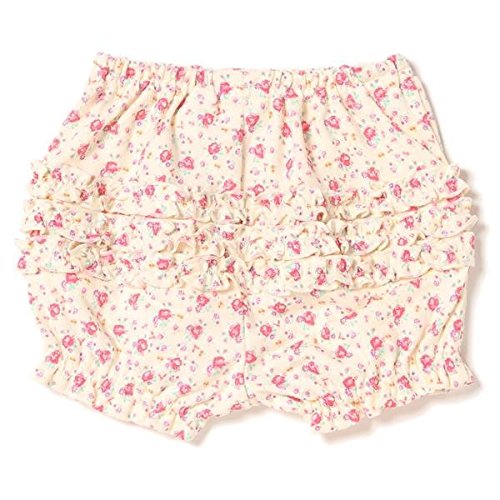 ■コーデをかわいく演出する、小花柄のカバーパンツです。ヒップ部分へフリルを3段に配した、スウィートな後ろ姿がポイント。 コットン素材のカットソー仕立てで、はき心地の良さもお墨つきです。リンゴモチーフとブランドイニシャルを組み合わせた裾の刺しゅうもお見逃しなく。