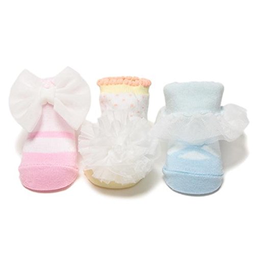 ■スウィートムードあふれるルックスで、コーデをかわいくまとめ上げるソックス3足セットです。ふんわり軽いチュール素材をアクセントにして、女の子らしく仕上げたアイテム。 それぞれデザインの異なる3足をボックスに詰めた、プレゼントにぴったりのアイテムです。
