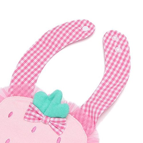 ■イチゴの周りをチュールで囲んでキュートな味つけをしたスタイです。イチゴ部分は肌心地がよく吸水性もあるパイル素材を使用。首周りやリボンはギンガムチェック柄を採用しました。首周りは2段階までスナップボタンでサイズ調節が可能。色違いで揃えるのもおすすめなアイテムです。