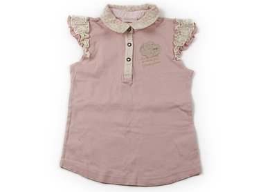 レース使いのかわいいカットソー生地のポロシャツ。実際のサイズ表記は135です。少し毛羽立ちがありますが目立った汚れのない良品です。