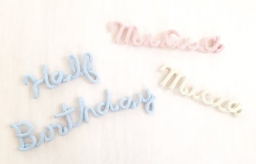 - 記念写真撮影にかかせないフォトプロップス!ワイヤーアートを得意とするミシアから、ウールレターの登場です!オーダーいただきましたアルファベットをメッセージにいたします。ゴロン寝したベビーの隣に添えてお楽しみください。