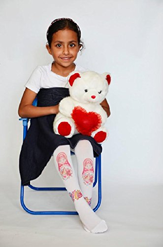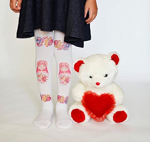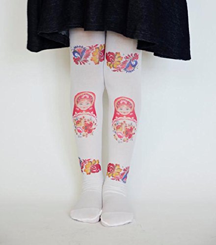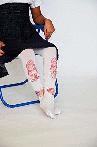 ☆子ども用デザインタイツ☆ホワイト&マトリョーシカ40デニール