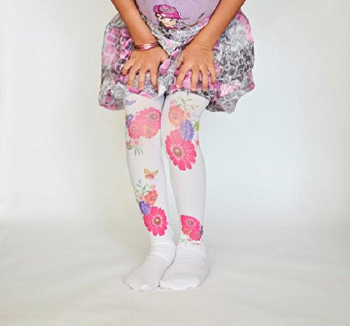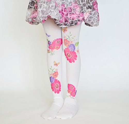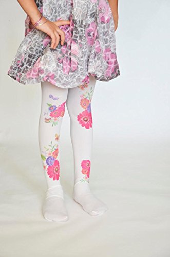 ☆子ども用デザインタイツ☆ホワイト&フラワーズ40デニール