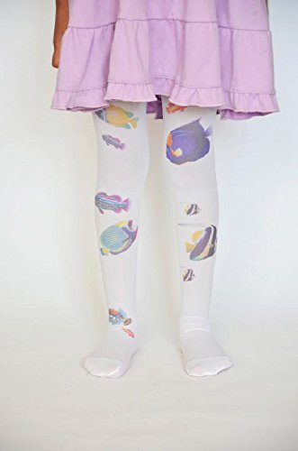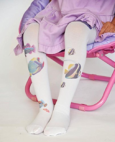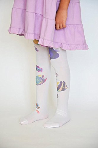 ☆子ども用デザインタイツ☆ホワイト&フィッシュ40デニール