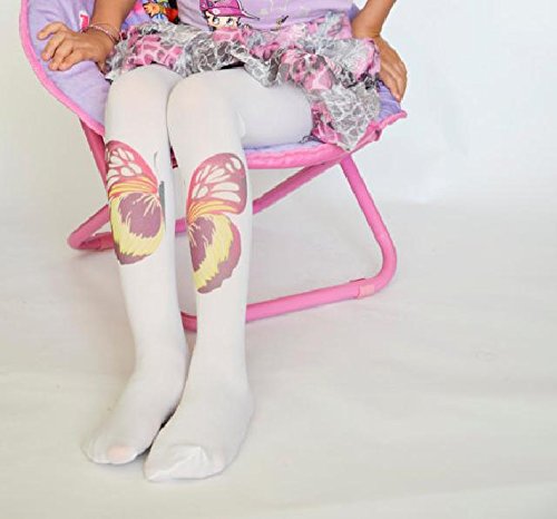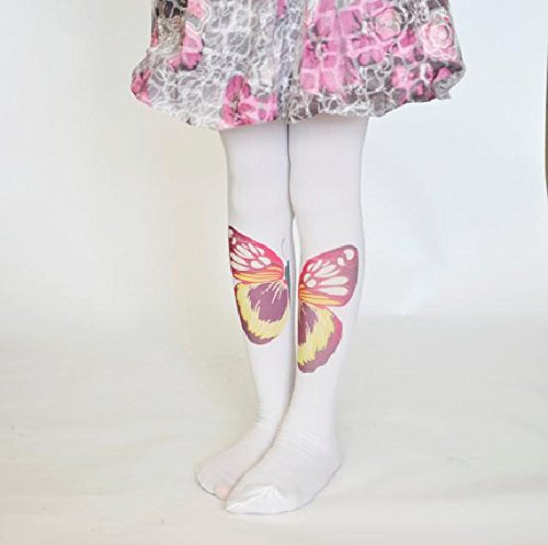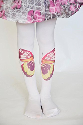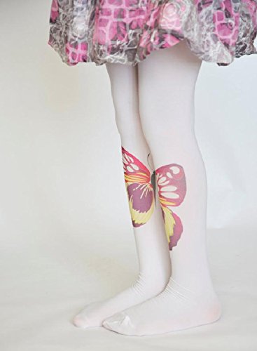 ☆子ども用デザインタイツ☆ホワイト&ビッグバタフライ40デニール