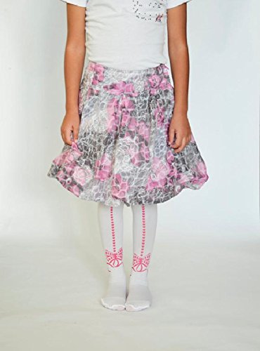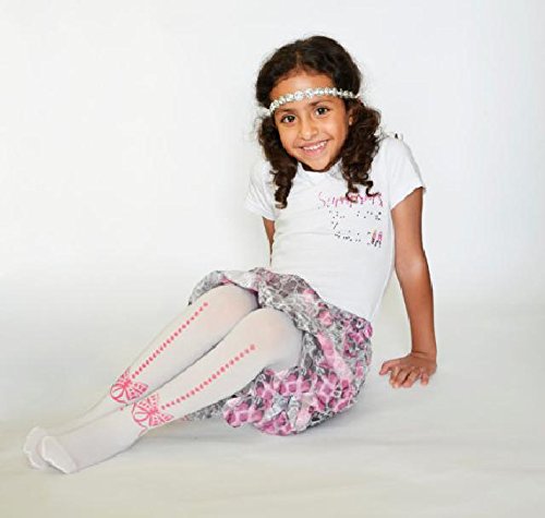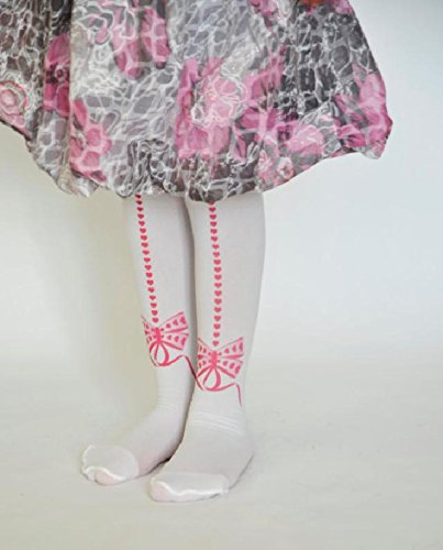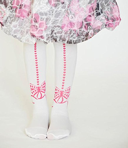 ☆子ども用デザインタイツ☆ホワイト&ピンクリボン40デニール