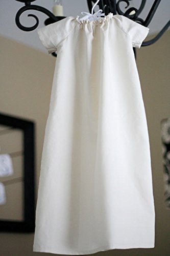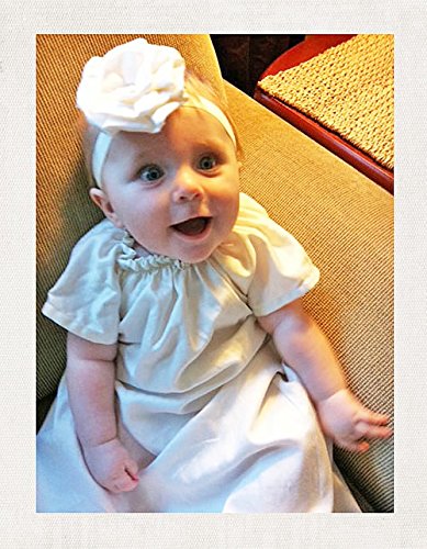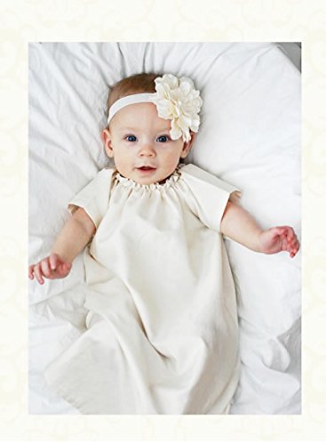 ベビードレス☆シンプルロングガウン「SHILOH」★ホワイト/アイボリー 出産祝い・赤ちゃんのセレモニー衣装に退院時新生児ベビーに着せたいシンプルなドレス。フリフリの総レースが苦手なママさんに選ばれています。