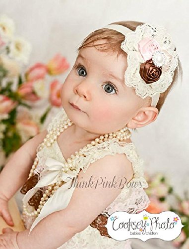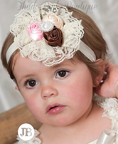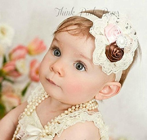 光沢感のあるサテンローズをパールとレースで素敵にアレンジ☆ シンプルでエレガントなベビーヘアバンド
