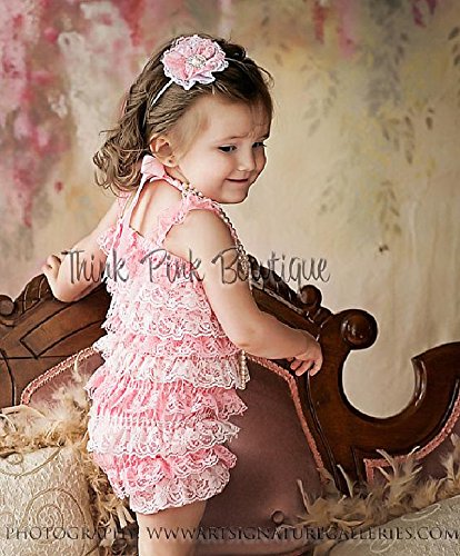肩ひもショルダー&リボン付ソフトロンパース newborn-4T(50-110)☆コーラルピンク&ホワイト