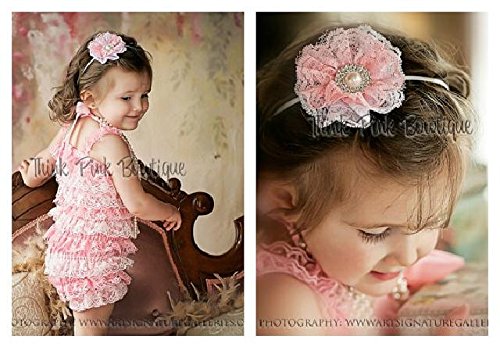 ロンパース&ヴィンテージヘッドドレス☆コーラルピンク newborn-4T(50-110)【2点セット】