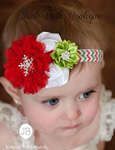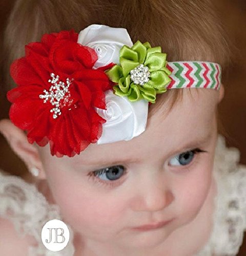 ☆柄バンドがキュートお花とラインストーンのヘアバンド☆クリスマスカラー