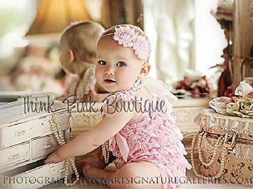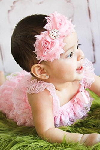 2つのヴィンテージシャビーローズーの間ににキラキラに輝く ラインストーンを上品に並べました☆ シンプルでエレガントなベビーヘアバンド