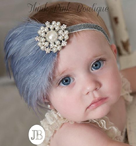 フェザーとラインストーンの絶妙なコンビネーション☆ シンプルでエレガントなベビーヘアバンド