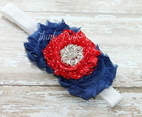 ☆トリプルシャビーローズとラインストーンのヘアバンド☆アメリカ国旗